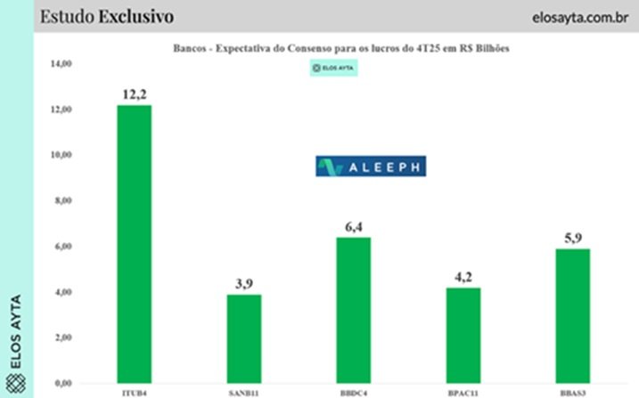 O levantamento da Elos Ayta com apoio da Aleeph mostra, em valores absolutos, as expectativas de lucro para o quarto trimestre, permitindo comparar o tamanho relativo de geração de resultados, o ritmo de crescimento em relação ao trimestre anterior e o espaço para novas surpresas positivas ou negativas na próxima temporada de balanços.