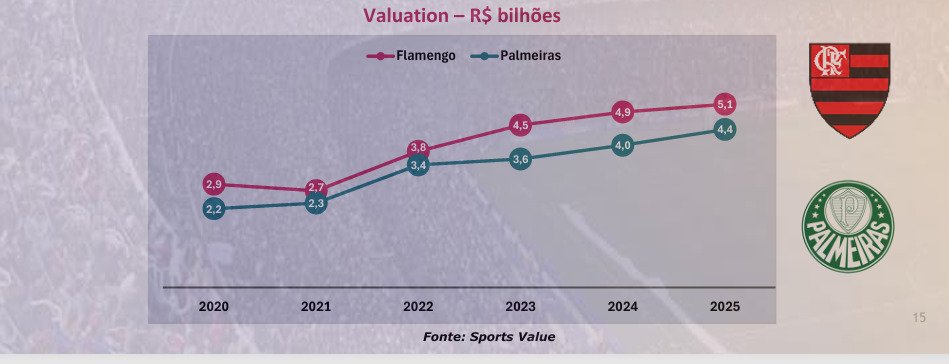 Segundo a Sports Value, o Flamengo tem a marca mais valiosa, enquanto o Palmeiras possui mais ativos, como estádio e elenco mais caro.