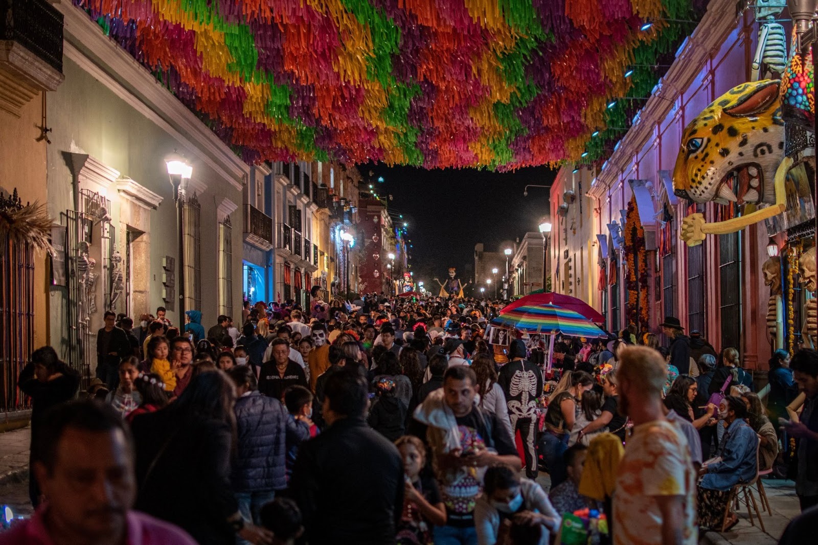 A riqueza de cores, crenças e rituais da festividade mexicana atraem viajantes para experiências em destinos como Oaxaca. A cidade se transforma nesta época, e o tour noturno do Día de Muertos por Oaxaca leva o público para conhecer seus altares decorados, panteões enfeitados, música, dança e gastronomia.
